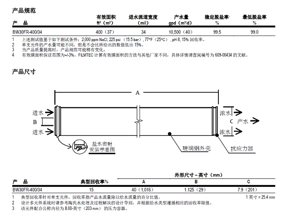 陶氏抗污染膜BW30FR-400/34