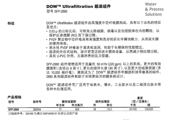 陶氏超滤膜SFP-2880