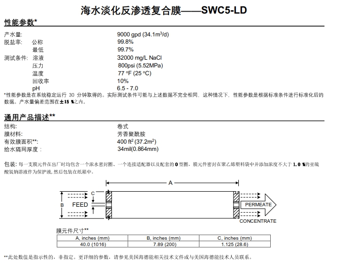 美国海德能海水淡膜SWC5-LD