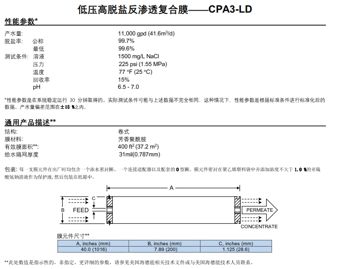 增强型低污染反渗透膜--PROC10